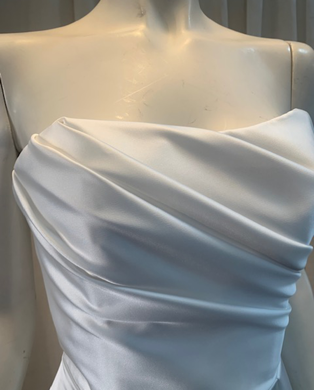 Elegant draped satin corset dress with a bold high split – the perfect balance of glamour and sophistication.