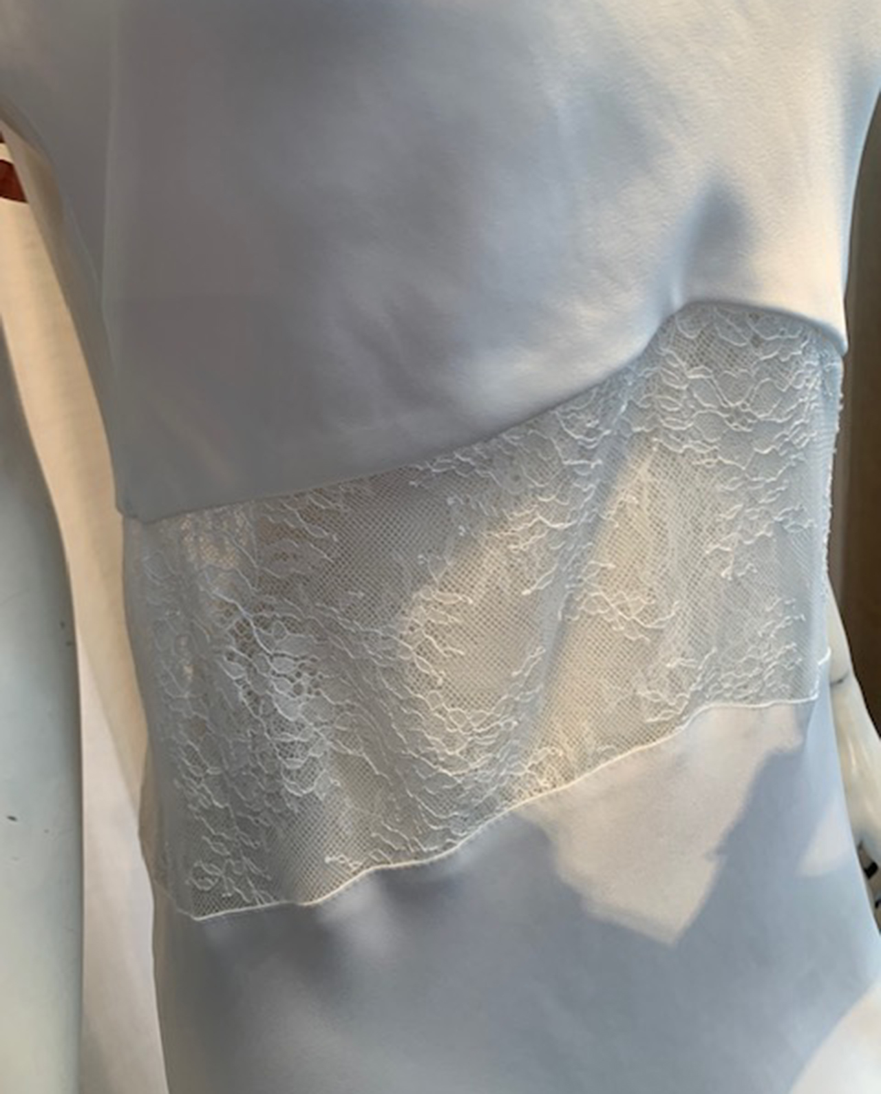 Elegant satin og blondekjole med out-cuts. Den perfekte dansekjole til senere på aftenen.